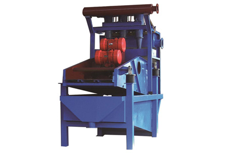 該篩主要由篩箱、激振器、支撐系統(tǒng)與電機組成。篩機整體水平安裝,篩網(wǎng)呈負(fù)角度(-10°)安裝,以保證強制脫水效果